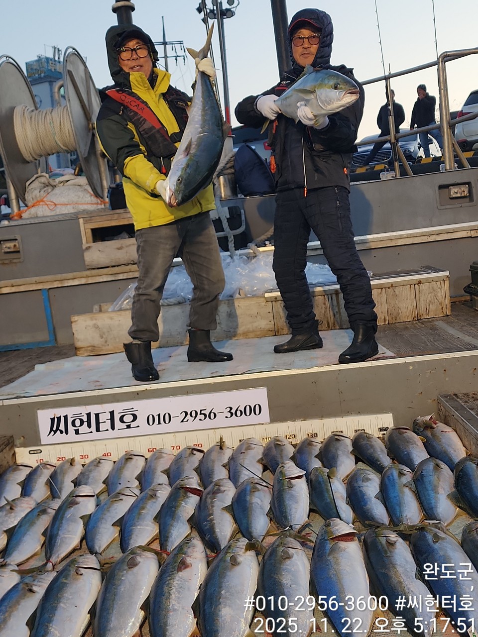 11뭘22일 토요일 씨헌터호 오늘도 방어 대박조황입니다