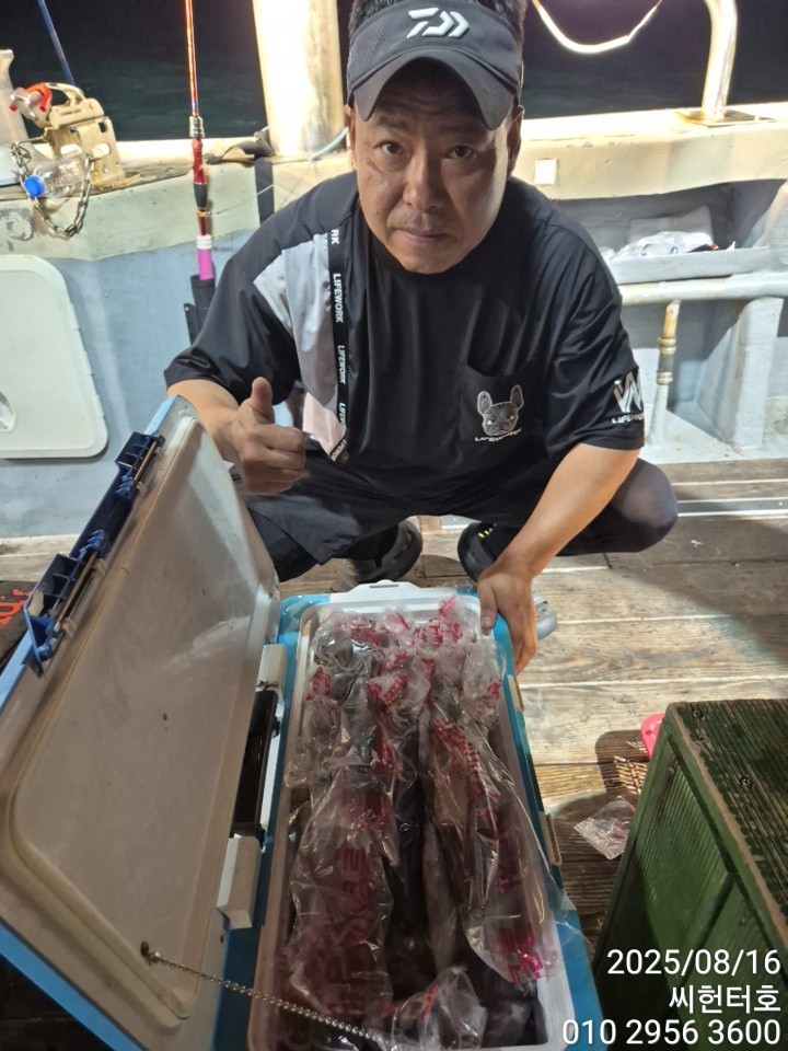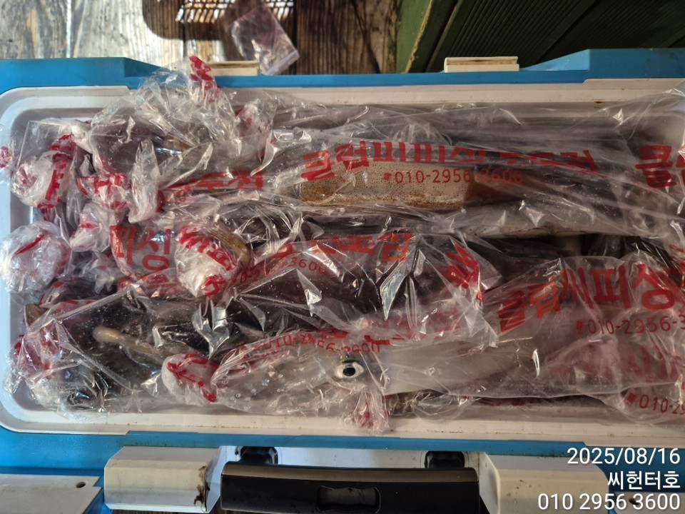 8월15일 금요일 씨헌터호(클럽씨호) 한치조황입니다